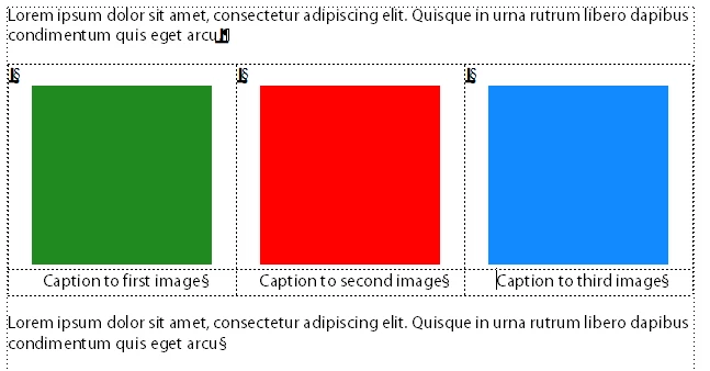 7. Add the images and caption text to each cell and it will look like this in FrameMaker: