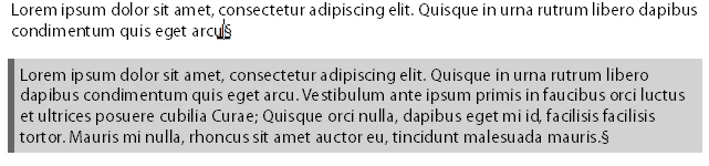 The call out is done in the same way,but this time use a single cell table. Set the cell shading to a suitable grey and set the left border to a thick darker grey.