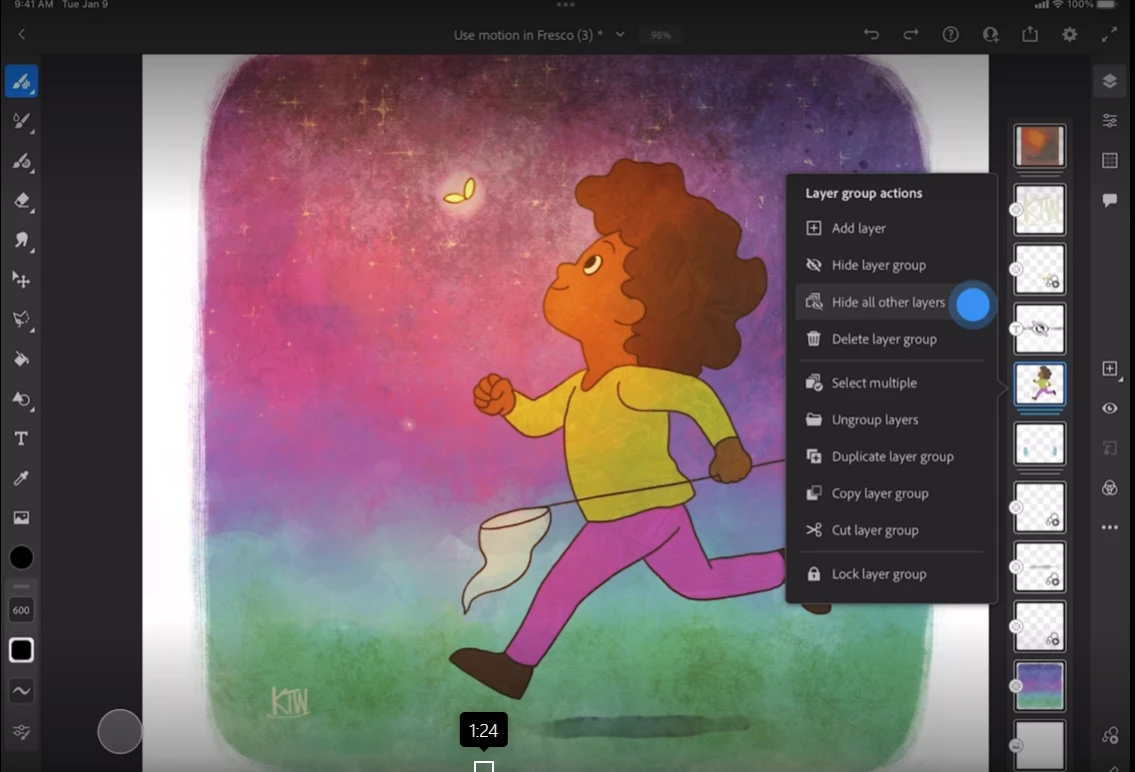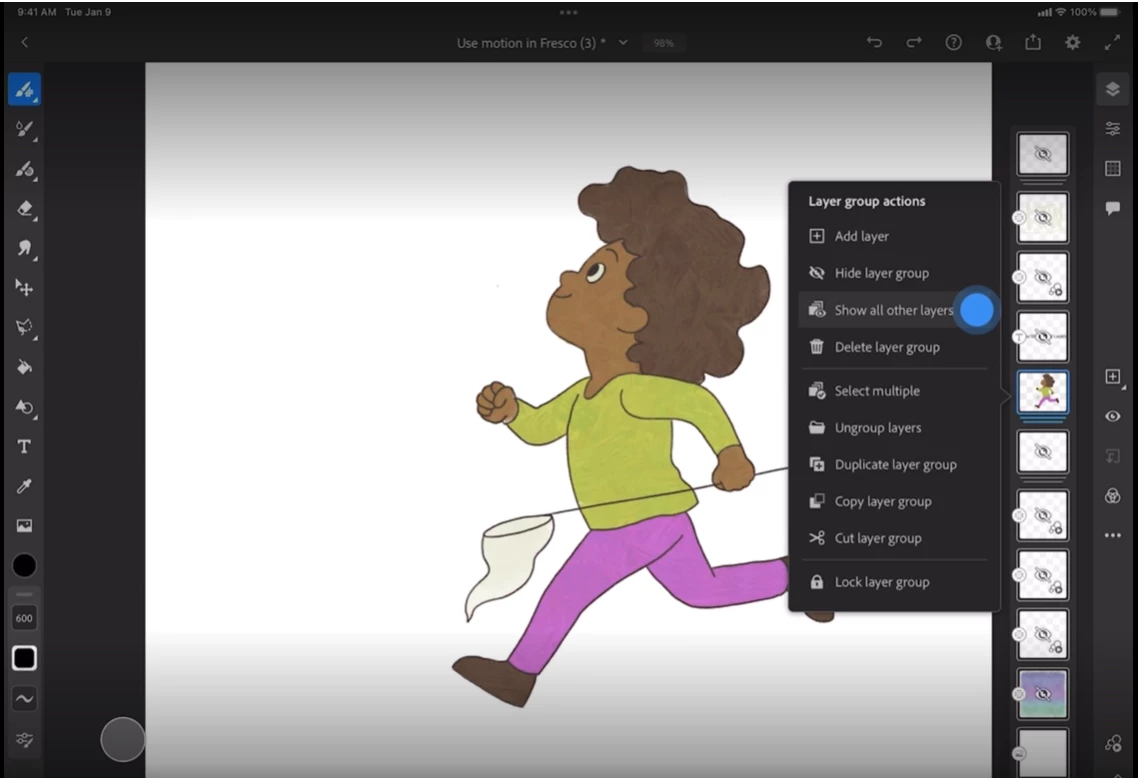 Hide/Show all other layers in Adobe Fresco to stay focused on the current layer