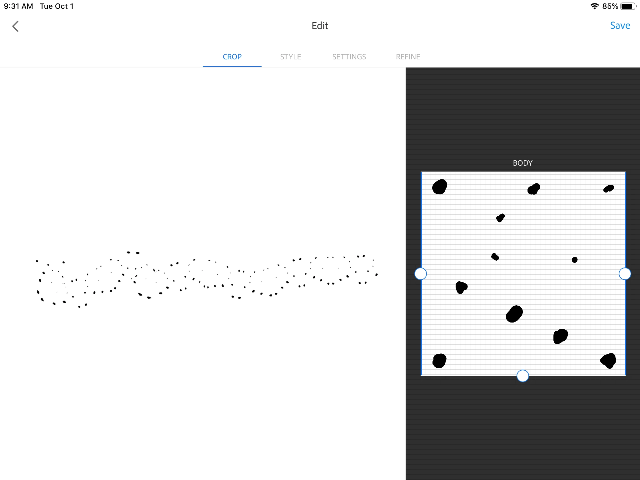 4. Edit the Crop so you have all BODY, no TAIL or HEAD. You can also rotate the drawing in this view to get different effects.