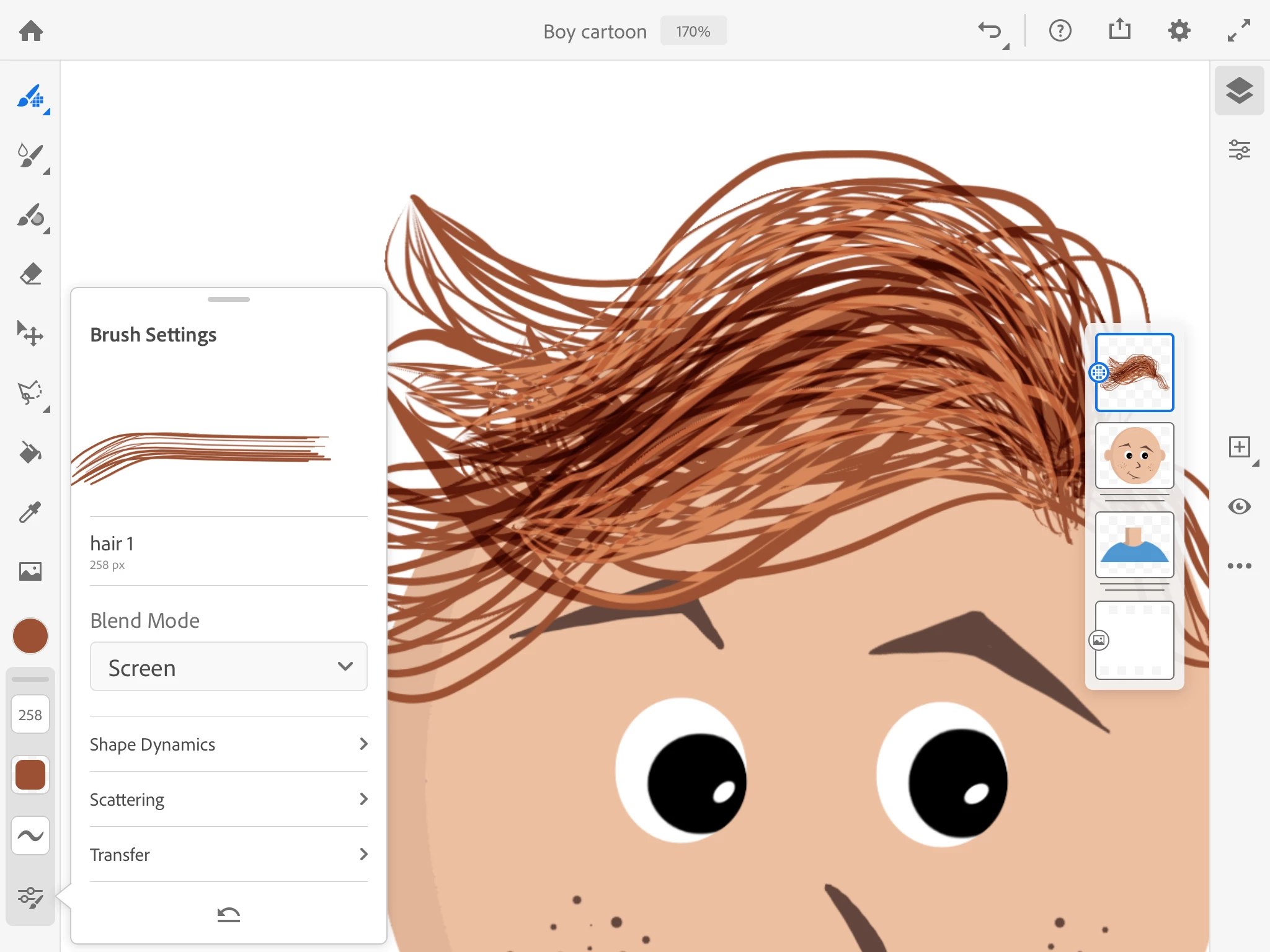 10. Choose a color for the hair, and a large brush size for cartoon lines like shown here. Or paint with a small brush for more realistic looking hair.