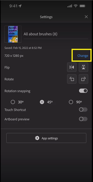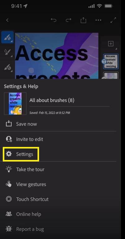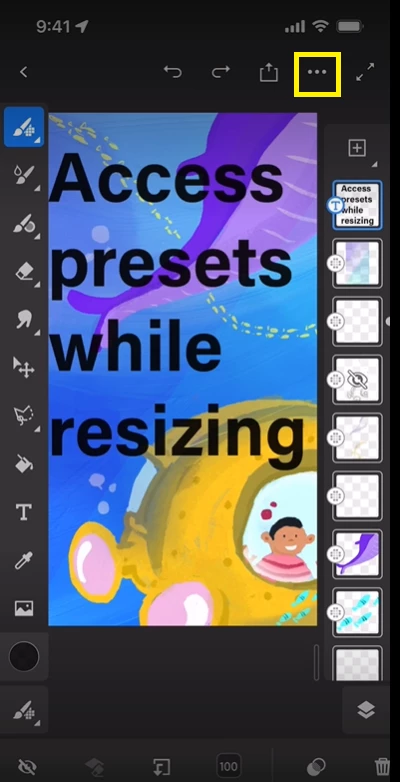 Fresco 3.4 provides you an option to resize your documents on your iPhone more easily with direct access to your custom document presets or the built-in presets.