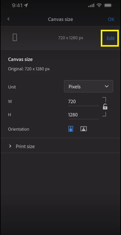 Resize Documents in your iPhone by easy access to custom preset in Fresco