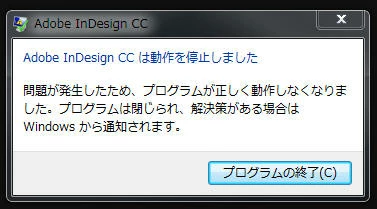 InDesign CC x64 が立ち上がり直後に動作停止します.