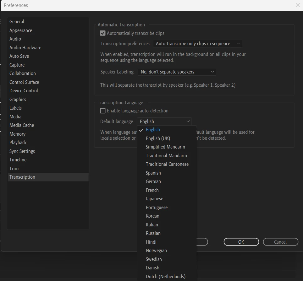 To the list of languages that can be transcribed?