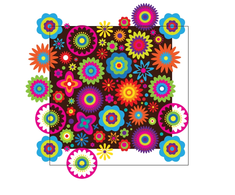 I realise that if it was just the black square alone I could set it the X and Y co-ordinates a 0 and make the box 40mm x 40mm but the flowers are the tricky bit and the spill over the black box (until I crop them to make the finished tile for repeating) and therefore to select all of it and set X and Y at 0 won't be correct.