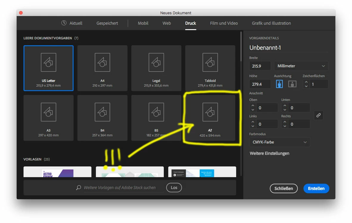 Means when i Press "cmd+N" the standard Dialog shows up with the tabs: "Mobile, Web, Print etc…".