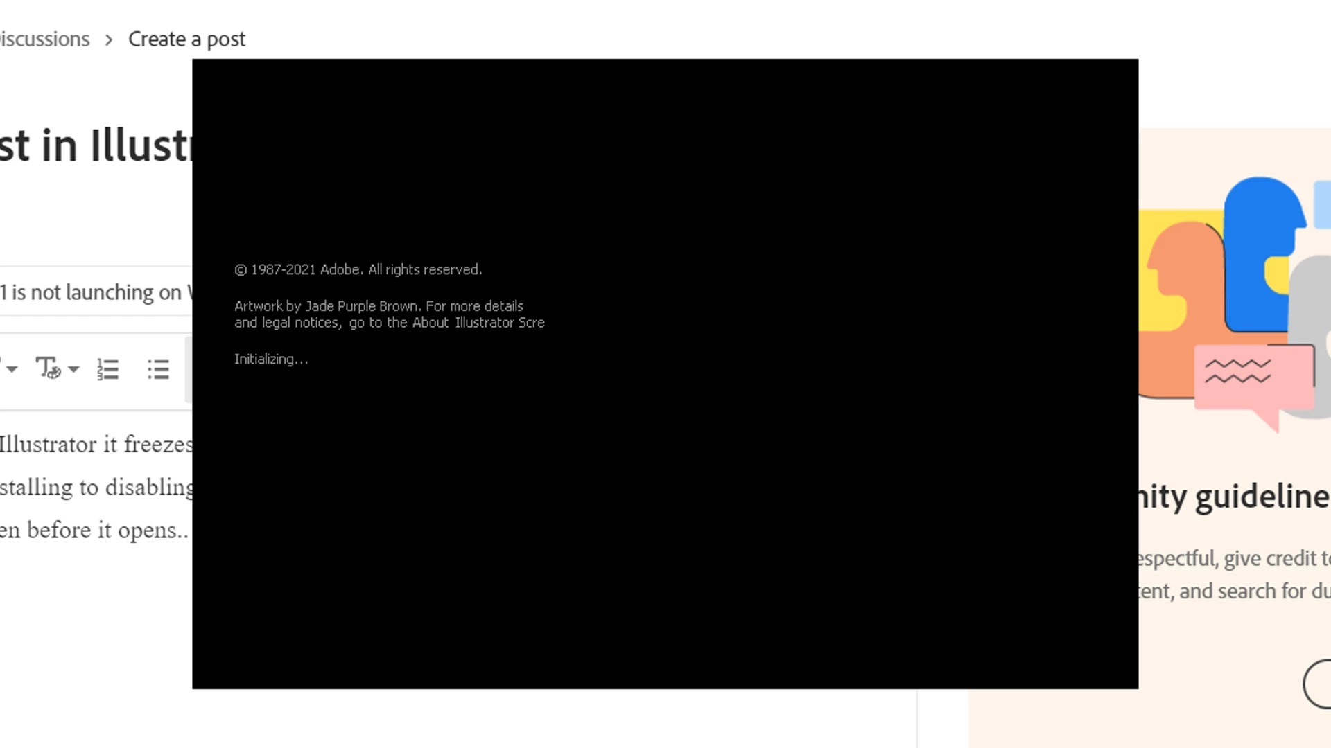 When i open Adobe Illustrator, it freezes on the Initialization screen and stops responding. I have tried everything from reinstalling to disabling Print Spooler.. help!