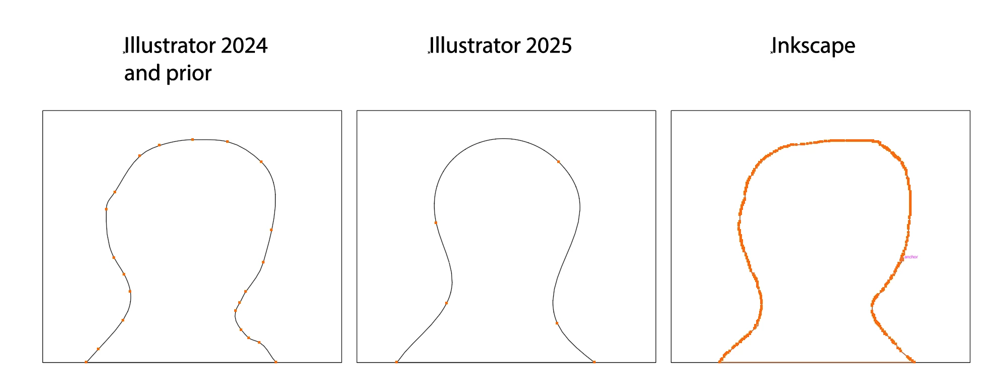 Here follows some comparisons of anchor point generation to show the bug and the feature request on the bottom: