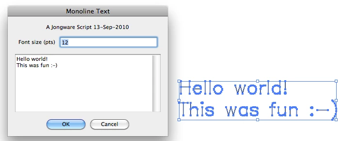 Spurred into action by an ongoing discussion at Typophile: Technical Q: Monoline fonts, I decided to have a go at writing a Javascript. I'm pretty pleased with the result; perhaps it's of interest for the technical illustration drawers among you!