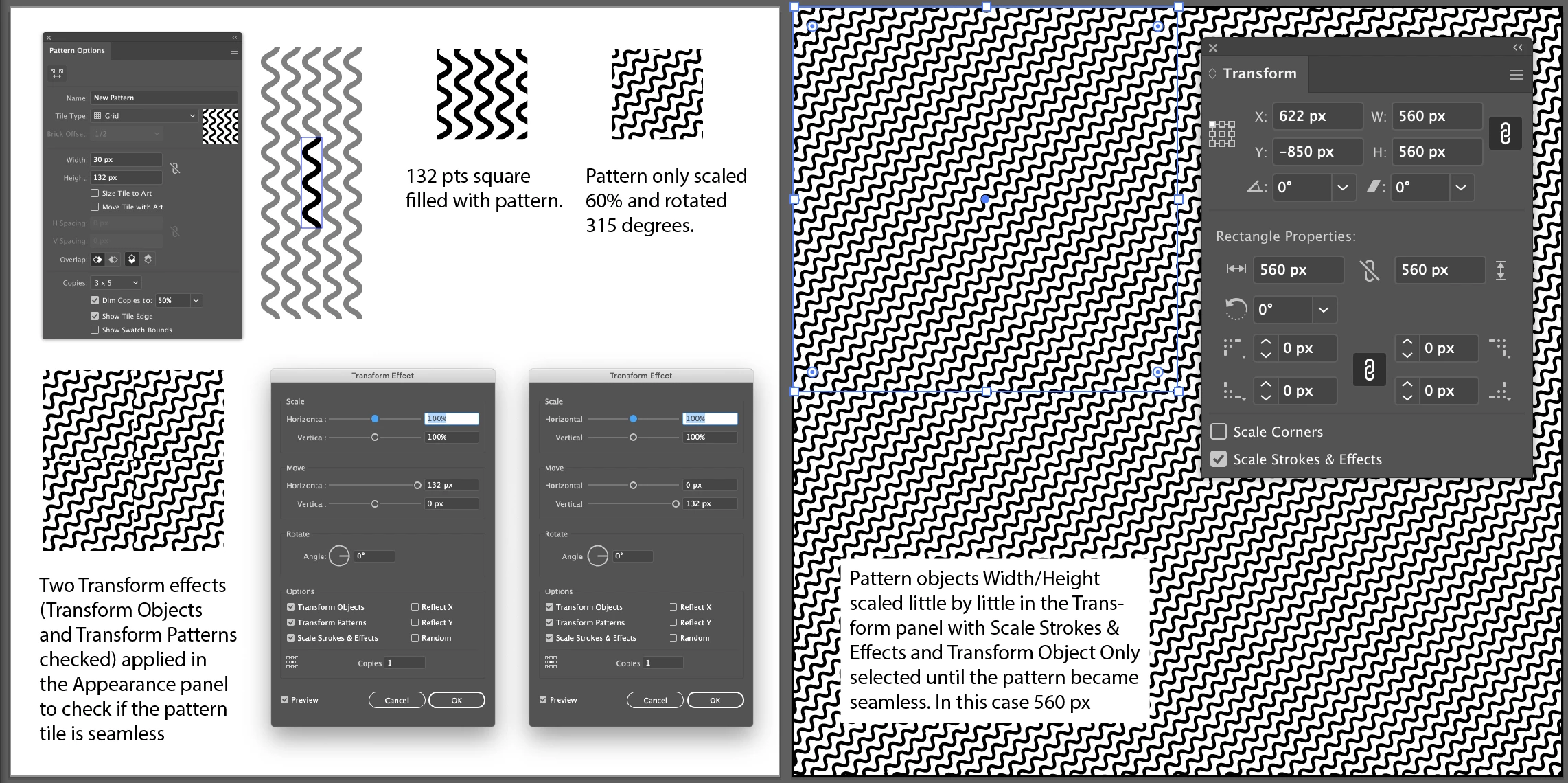 I am trying to create the attached into a seamless print however, I am coming across issues making it seamless given than there is a slight angle change and I was hoping someone would be able to assist without having to completely change my pattern. It started off as layer one but I wanted to scale it down to 60% and rotate it 315 degrees and now it is no longer seamless :(. Thank you in advance for your help 🙂