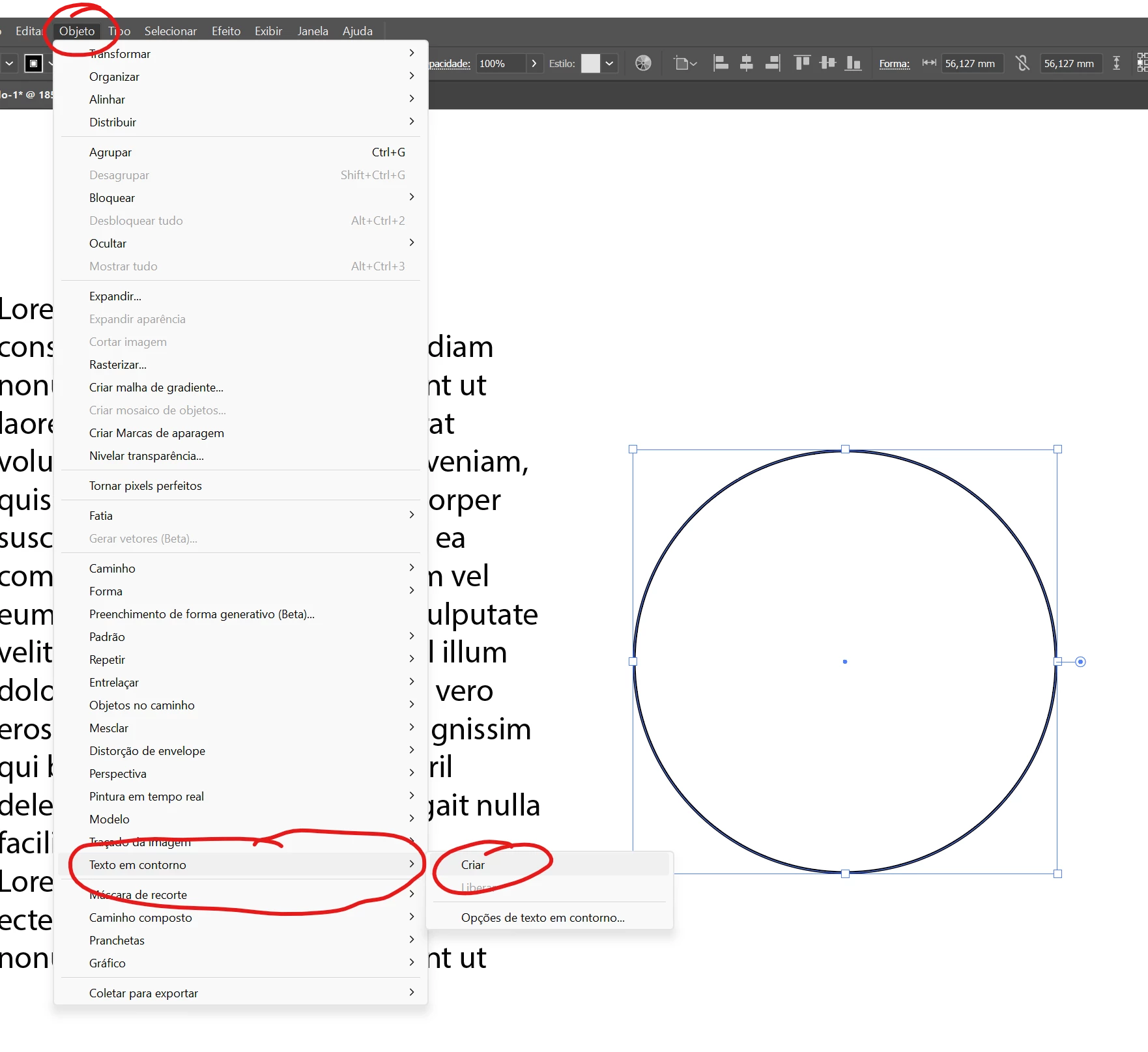 Você precisa deixar APENAS o objeto que deseja que o texto contorne selecionado.