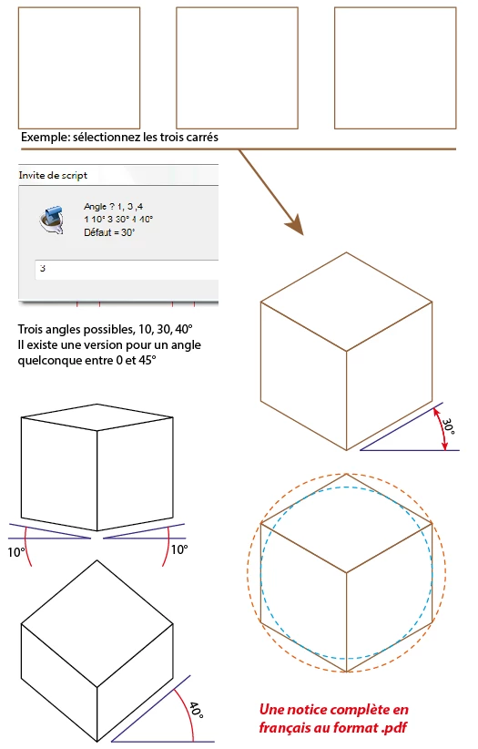Réalise une perspective axonométrique pour les angles 10, 30, 40°