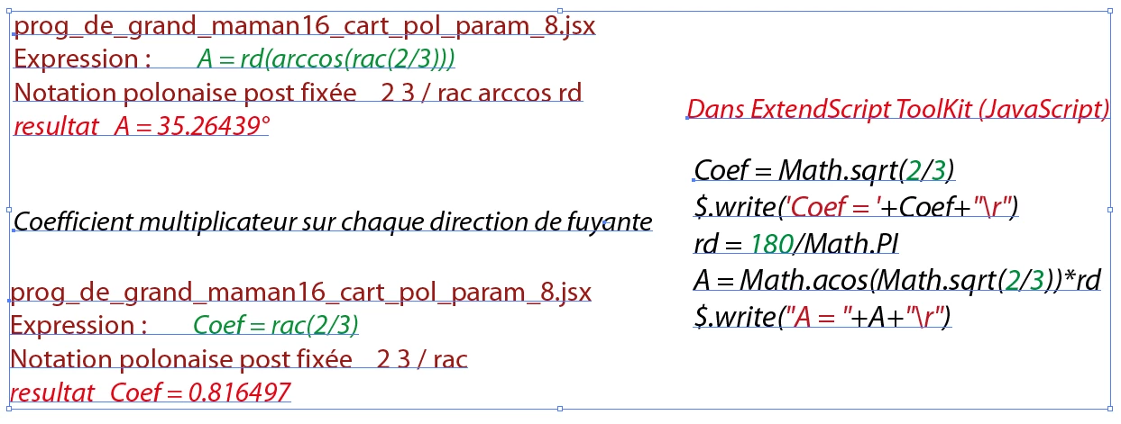 Trois directions de fuyantes à 120°, le coefficient multiplicateur est le même sur chaque direction de fuyante, il est d'environ 0.82