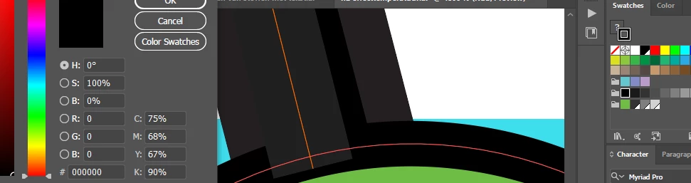When selecting both figures the swatch shows as the same data black (R 100, G 100, B 100) while in the preview it clearly isn't.
