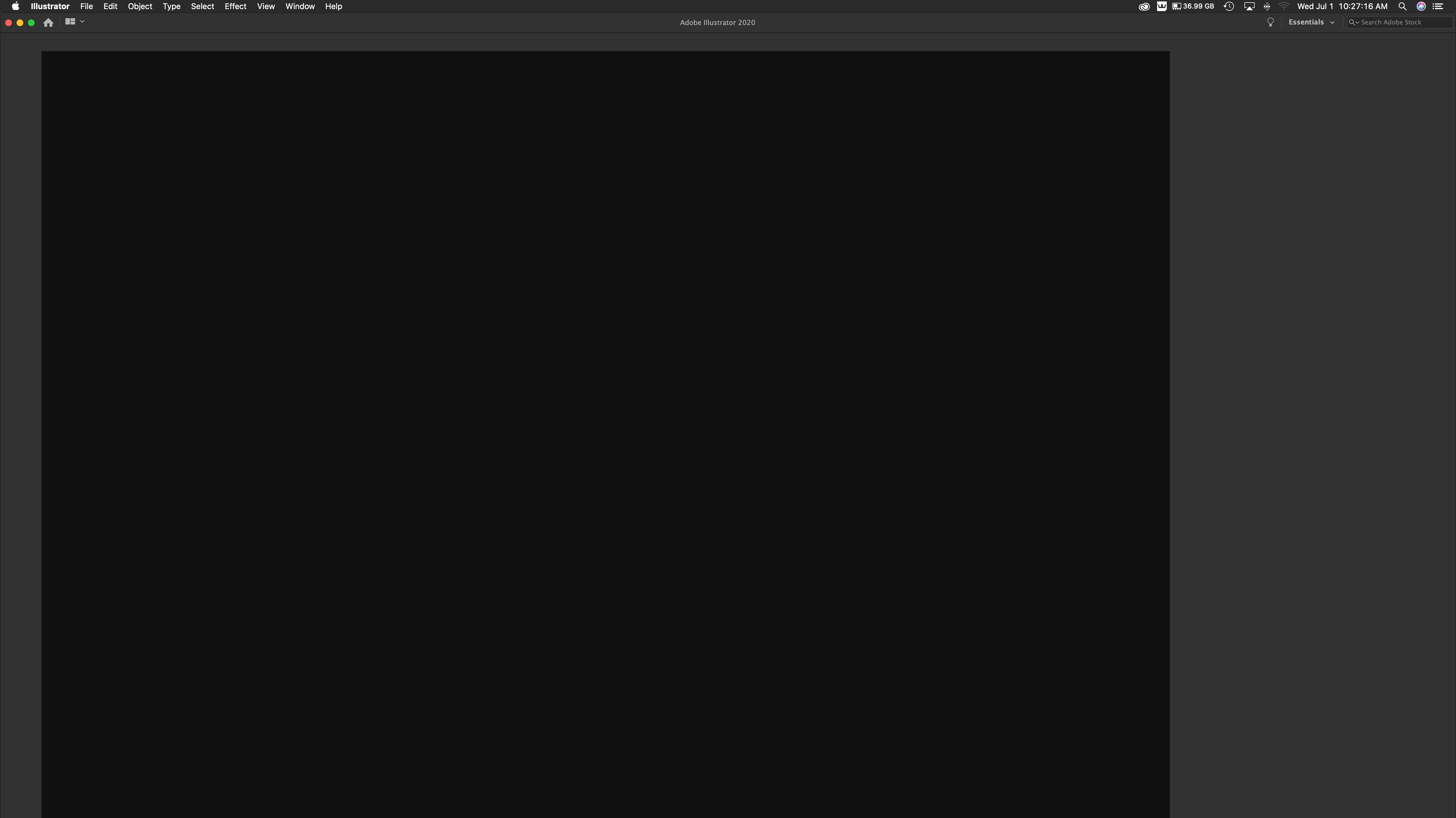 Blank workspace Illustrator on macOS