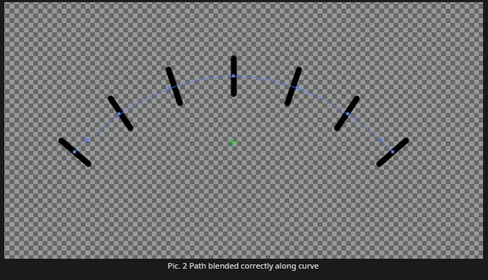 I'm coming with the question about 'blending' this short path along curve. What I try to do is presented in picture no. 3. However doing it via Object > Blend gives a result where object is centered on the curve (which is technically correct outcome, just not the one I'm looking for). Is there any clever way I could achieve result from picture 3?
