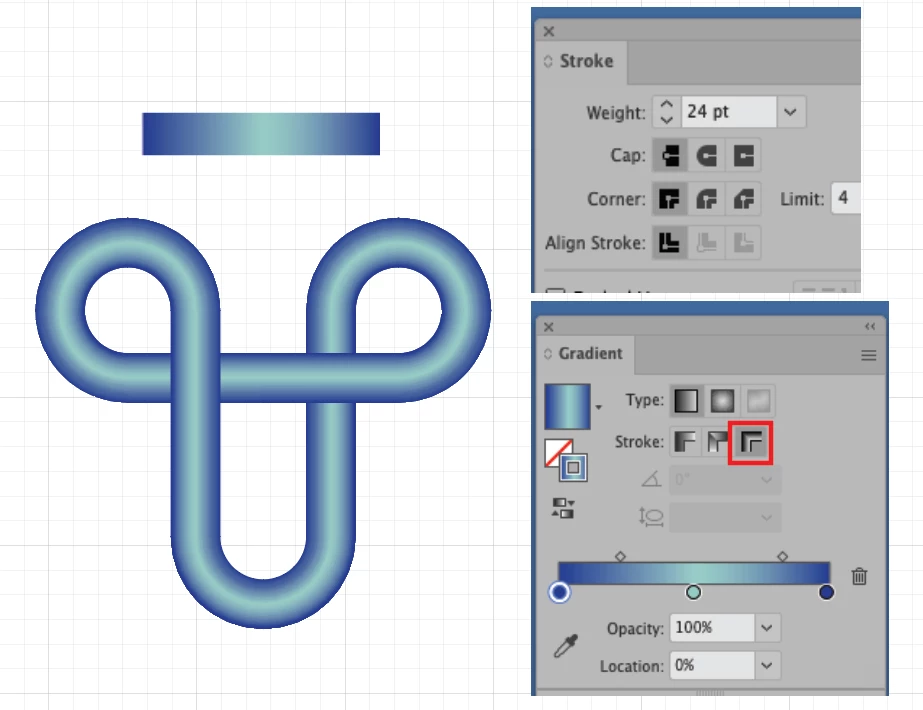 Apply gradient across stoke.