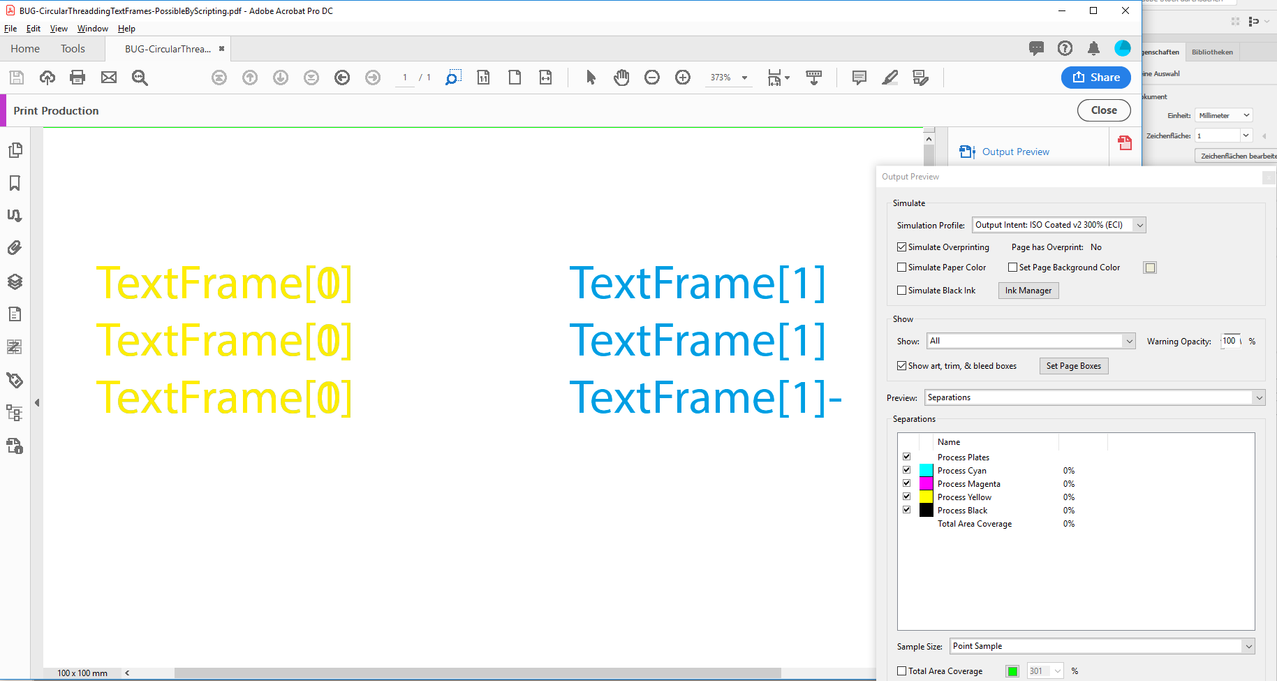 … Basically you want to copy something with two threaded textframes into another document, they become un-threaded. Really hard to be aware of if not paying attention and expecting the duplicate() function to work exactly like copy/paste command.