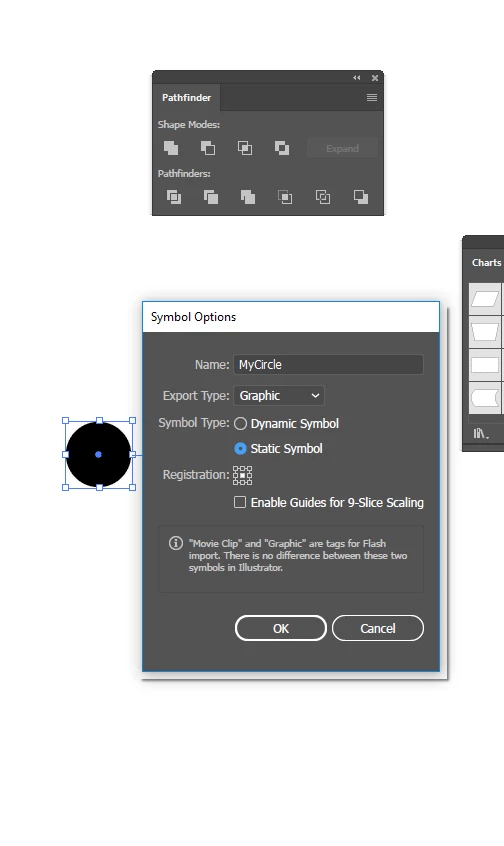 2. open your symbols palette and drag your circle into it. A pop up comes up.