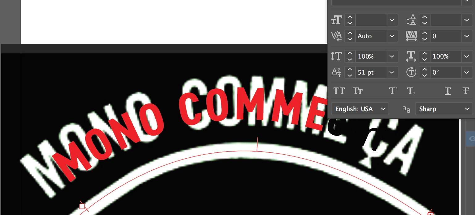 - Using the pen tool to create the text form scratch (Again, the curved effect throws me off)