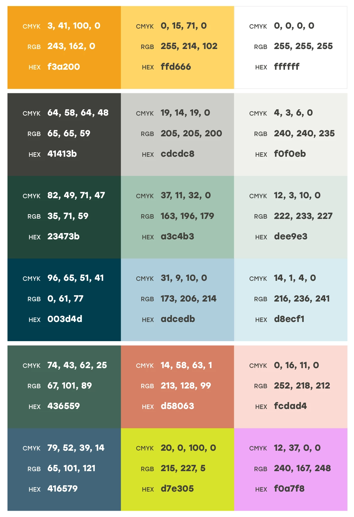 I'm working on finalizing a color palette for a client and I haven't been able to land on a serviceable CMYK value for most of the colors. Here's an explanation of what I'm talking about: