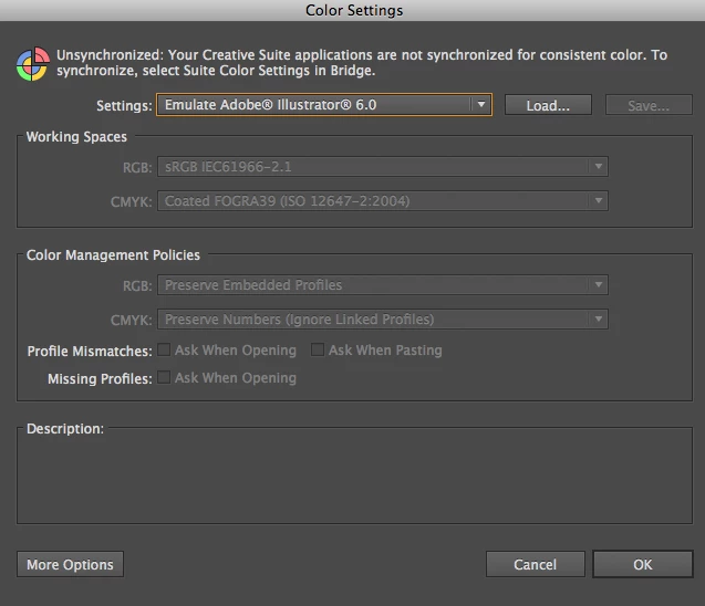 But problem is i need to change the color setting as "Emulate Adobe Illustrator 6.0"