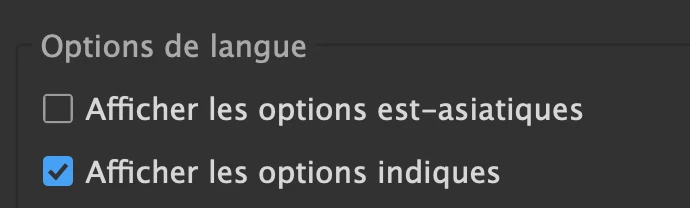 prefs > afficher les options indiqués