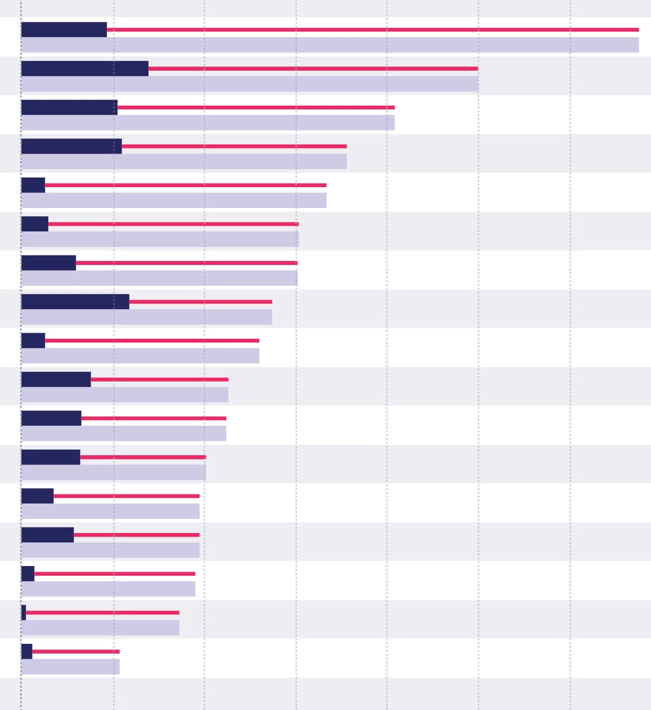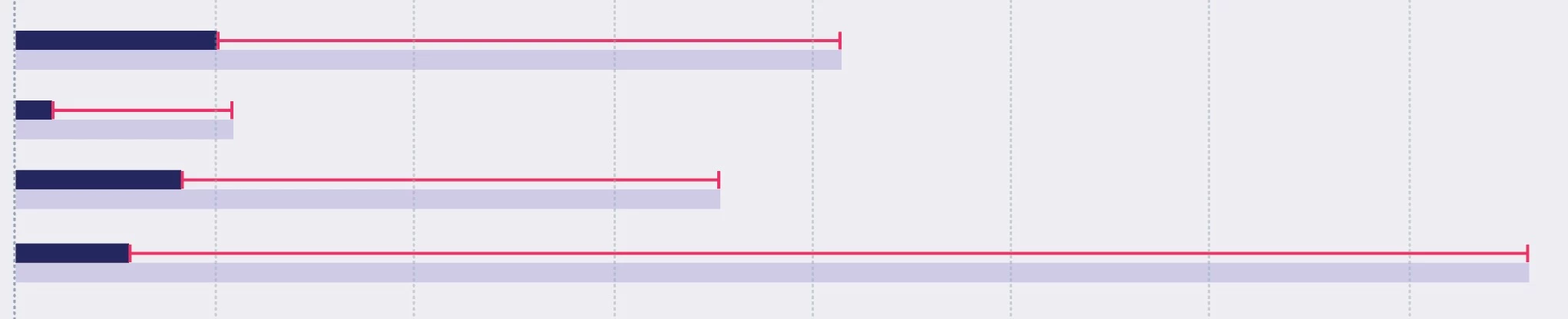 The first example, which has all bars as rectangular shapes, needs to be converted into something like the second example, which has the pink bars as lines with endcap "arrowheads":