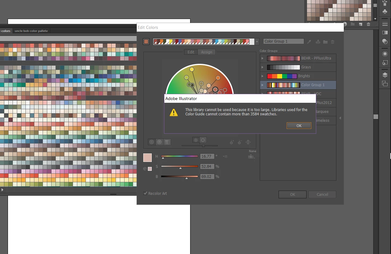 Hey guys. I am trying to get colors accurate for a mural project I am painting and I am taking it to the paint store because palletone colors are not accurate for that store. Ive downloaded the file from behr.com: Downloadable Color Palettes . I am trying to convert to one of my pallettes, and it says that the file is way too big for some reason. It works on palletone just fine, but the downloaded behr file says its limited to 3584 swatches.