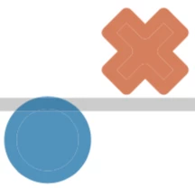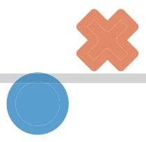 I'm working with PDFs created by some toolbox - in my case it's python and matplotlib. My graphs contain circular and cross-shaped markers that are outlined by an edge. These markers I will use in this question to illustrate my problem(s). Both fillings and edges of the markers are painted with alpha=0.7.