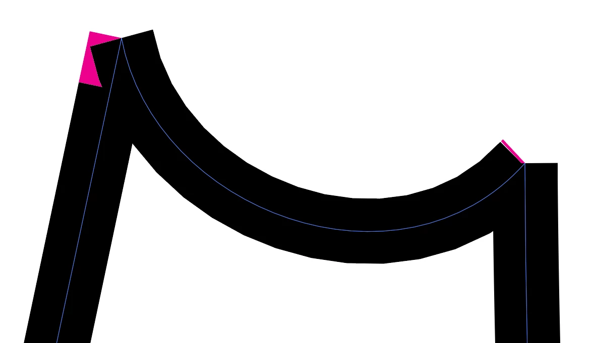 The whole pattern is compressed to a mush shorter path than wanted as you can see on the curved path. On the right side is the pink path, which should be much longer or even not on this position regarding the whole shape
