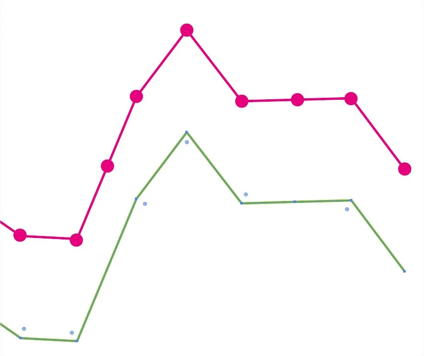 I would like that each point of the green lign appears as a circle, like on the pink line. Is it possible to make it happen automatically or do I have to place each circle on each point individually ?