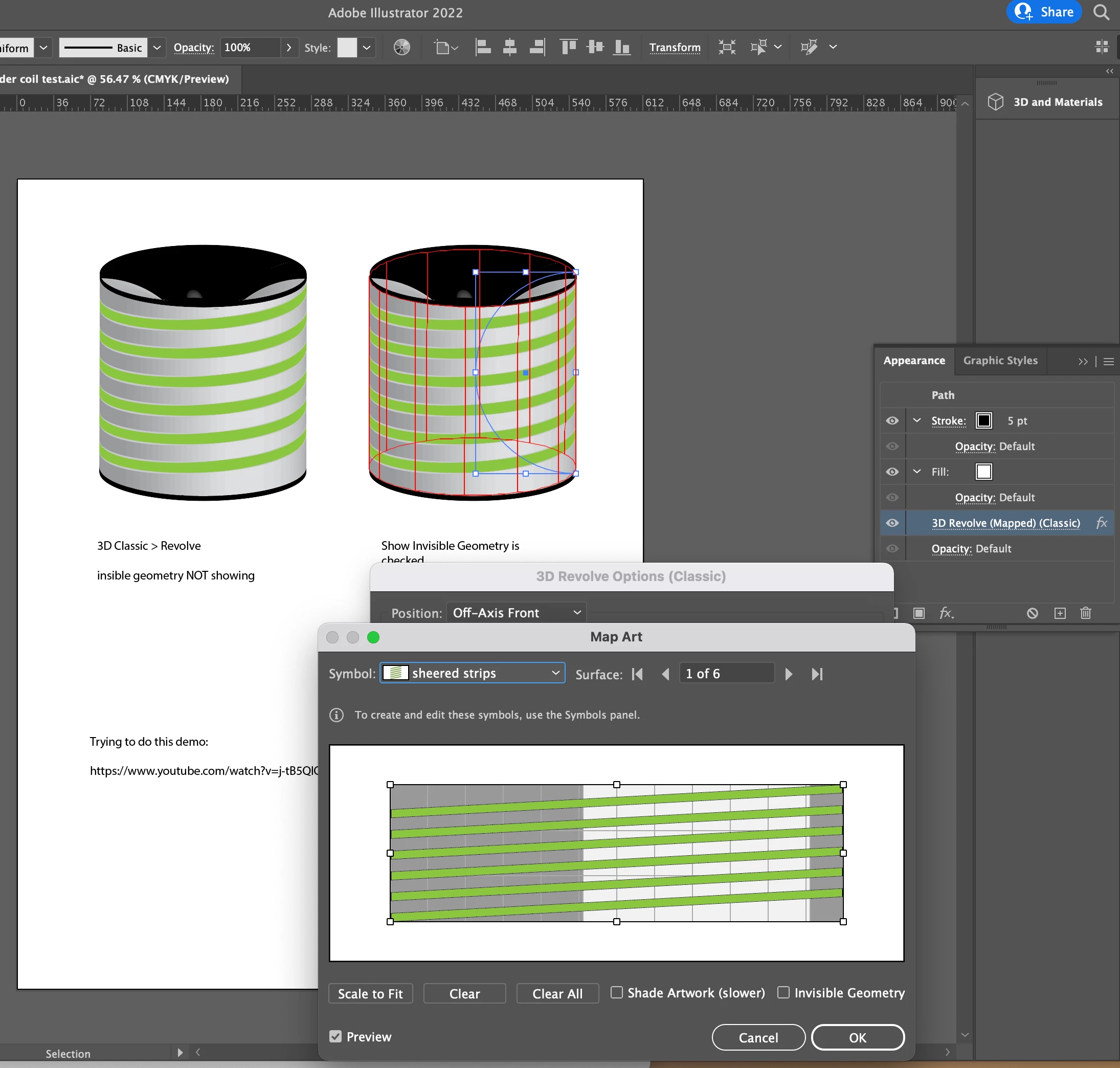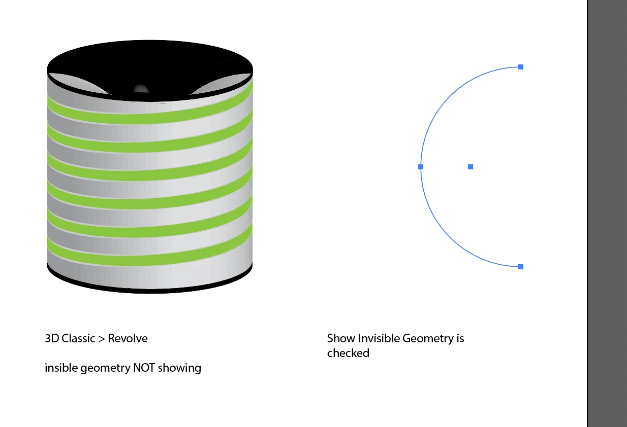 In the current 2022 version of AI, using 3D Classic revolve, the Show Invisible Geometry checkbox just makes the mapped art completely disappear. It doesn't show when you Expand either. Anyone know what is going on?