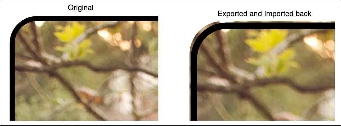 Unfortunately, the exported PNG does not match the sizes of the original item and when imported back gives results like: