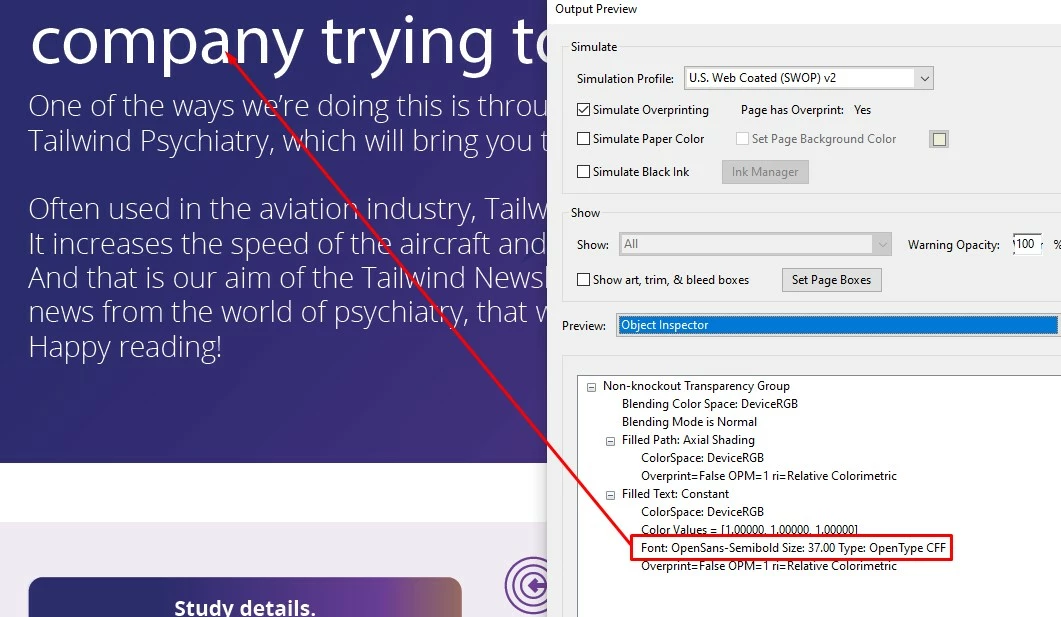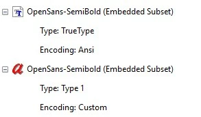 In the PDF Properties both Myriad Pro and Open Sans Semibold are listed under Embedded Fonts