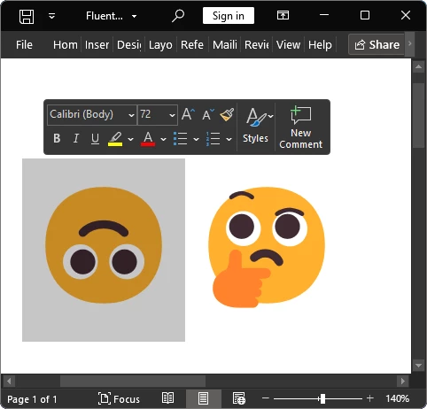 Microsoft Fluent Emoji in Office Word 2023