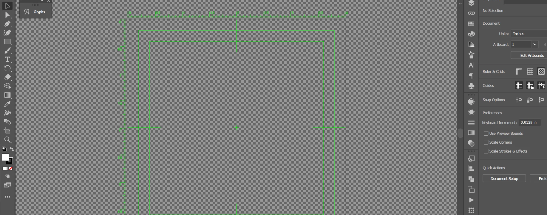 I like to work with this type of view for my projects (dark grey, plain background with a plain, white artboard and the rulers enabled):