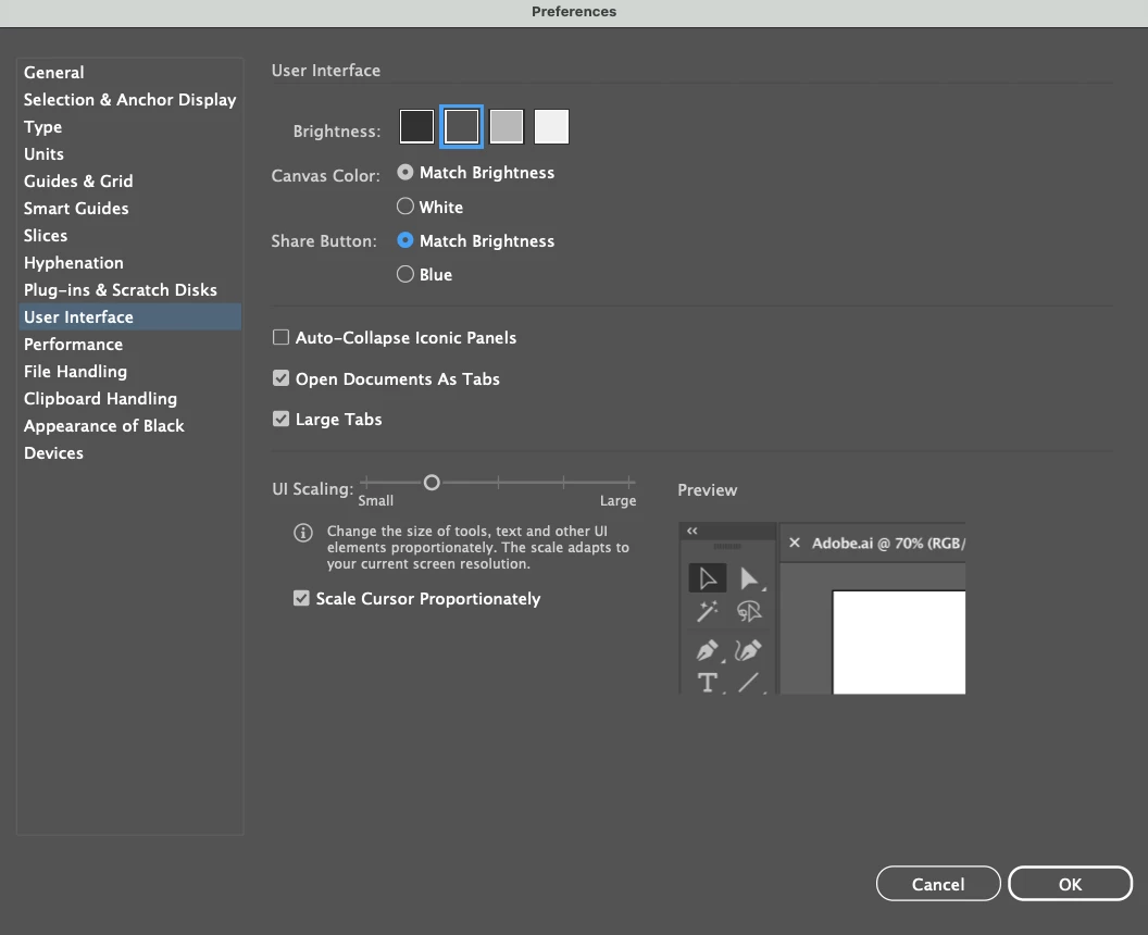 What are your user interface preferences set to?