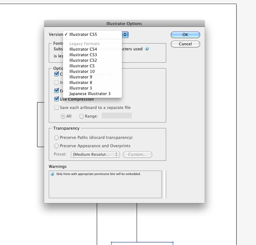 How do I downsave an Illustrator file from CS5 to CS4?