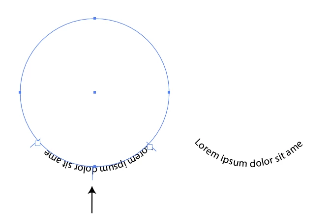How do I type text right side up at bottom of curve