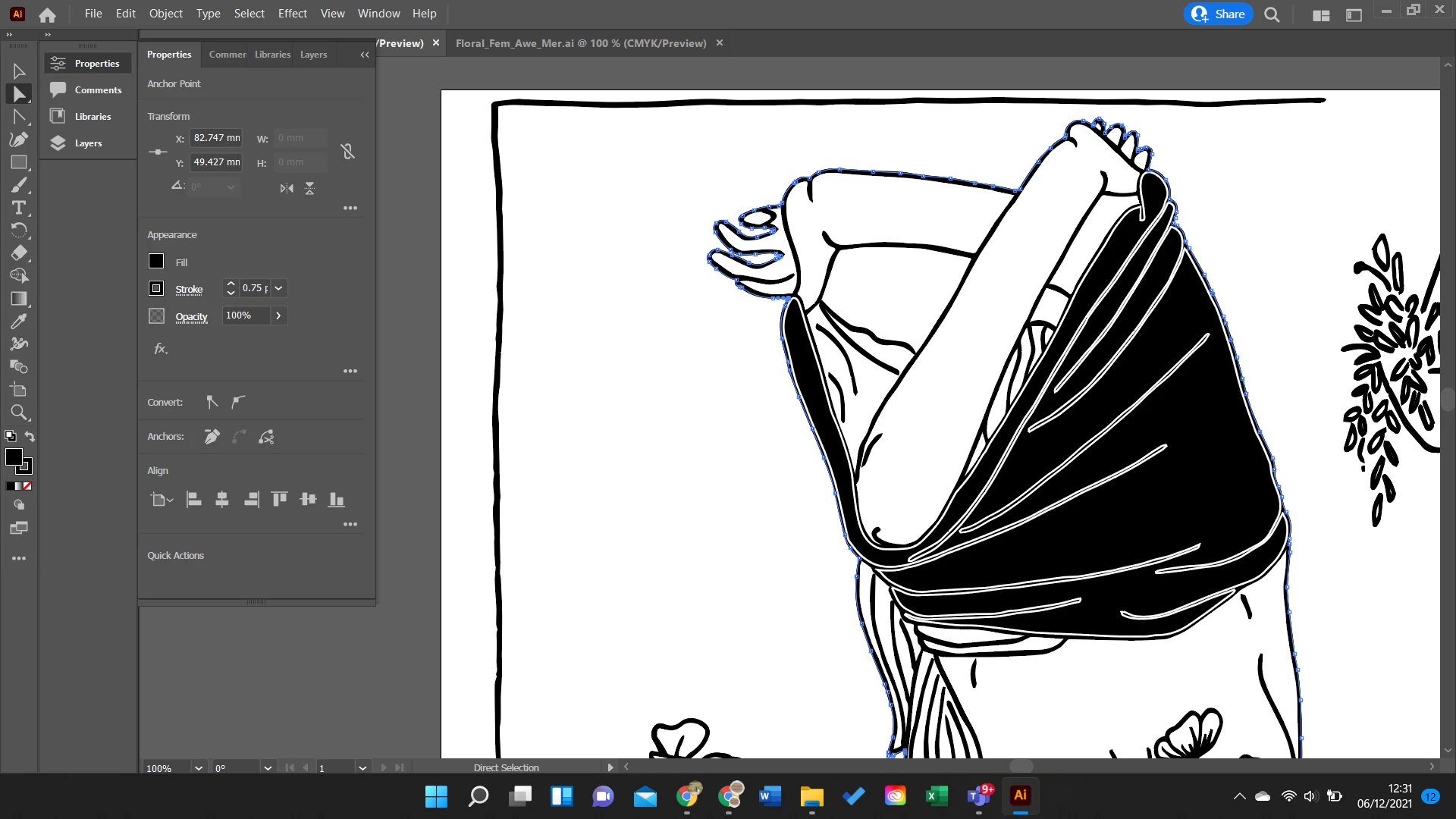 Bit of an illustrator newbie here. I'm trying to colour the jumper black, but I therefore want the lines around the jumper section to be white so they contrast.