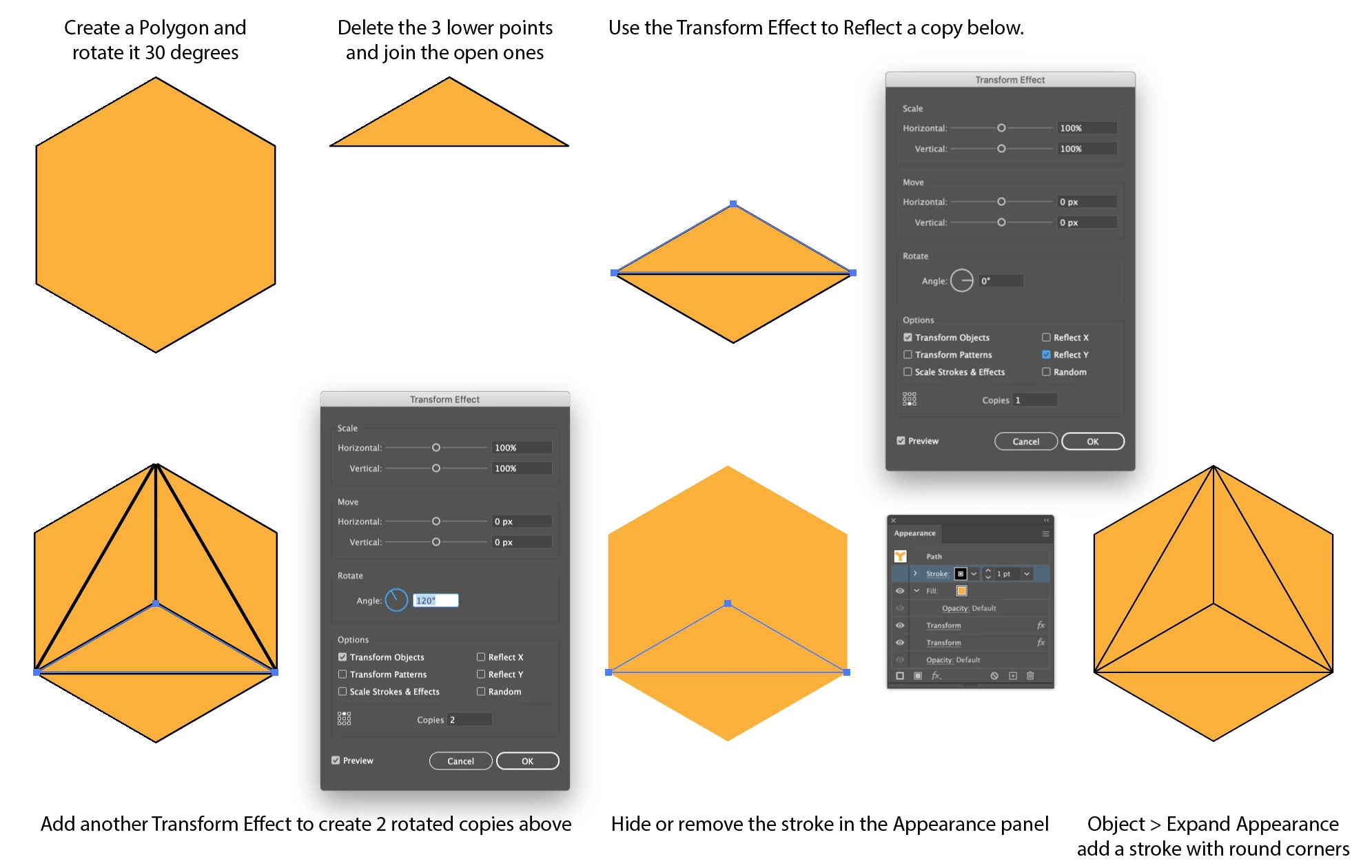 I then tried to replicate how I might draw a triangle on paper, by drawing a line from the midpoint of one side of a polygon to a vertice, but all I ended up doing was deleting an anchor point on my polygon. I couldn't find any info online on this!