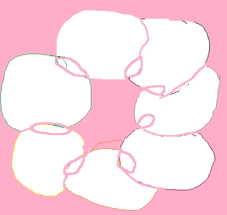 For the one-color print job, what I've done is convert each shape to white. Kinda boring. So I want to set it up so that the borders which intersect are "cut out" (AKA transparent). This way the logo will maintain its unique design with each smaller overlapping area being preserved. It's all in white though. Does this make sense?