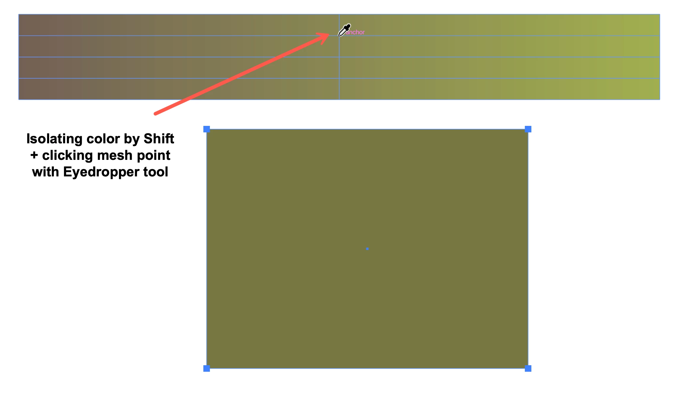 5. Go to the gradient mesh from step 3, and with the Eyedropper tool Shift + click on one of the center mesh points. This isolates the color that’s midway between the brown and the green.