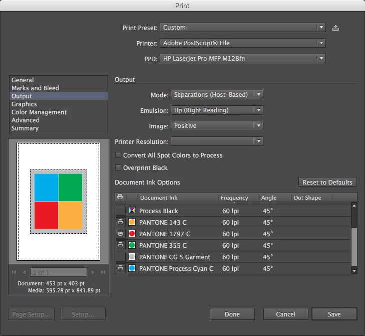 How to uncheck a color and save as PS (Post Script) Format ?