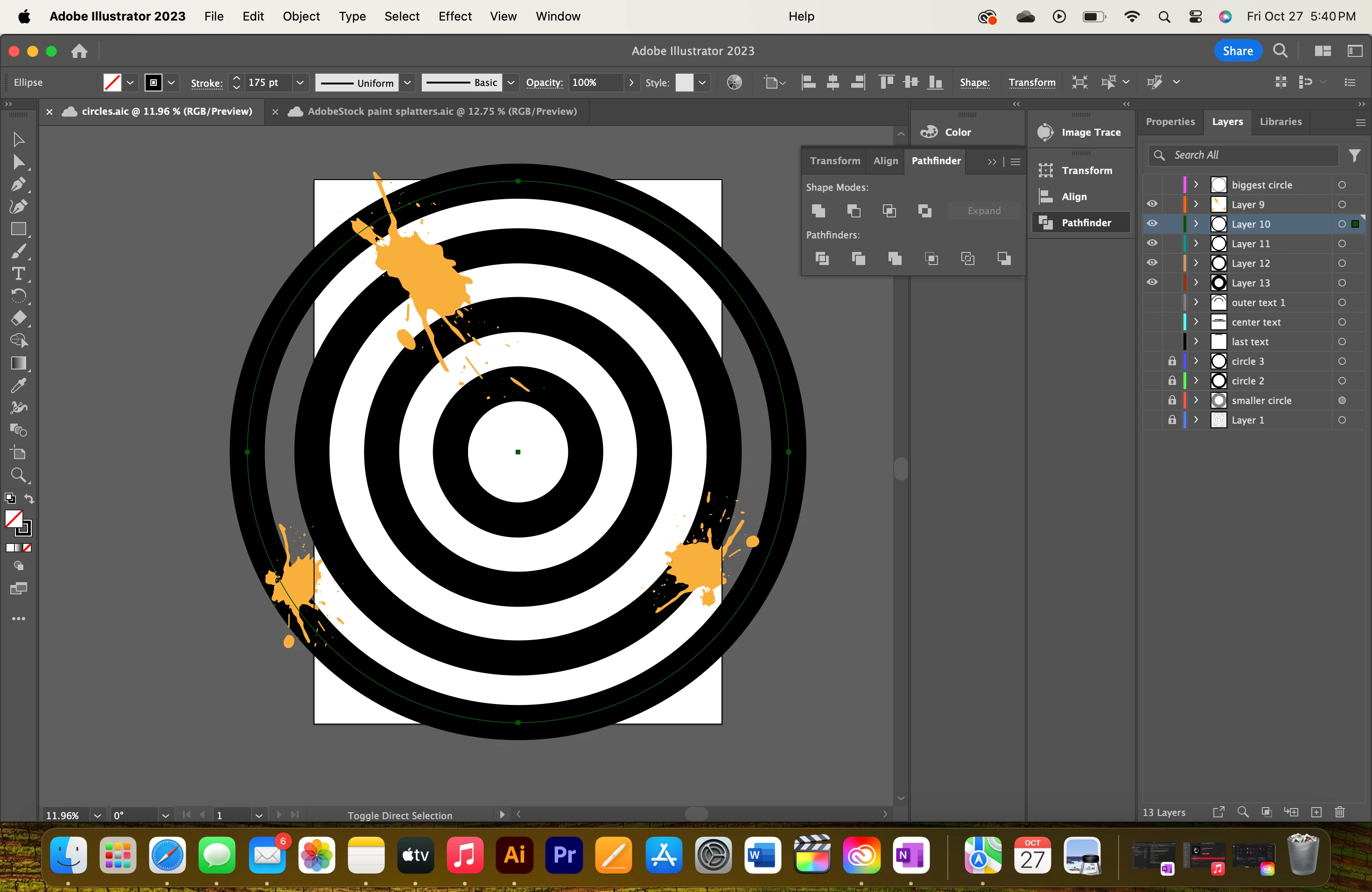 I've been doing research on how to add a paintbrush effect to a circle but can't really get a solid answer on how to do it, a lot of it seems to making objects into compound shapes and then uniting them but it makes what I drew disappear. In short how do I add the paintbrush effects onto the black circles like the second piece. I drew the second one on Procreate and the tool was 'Alpha Lock' but on Illustrator it's clipping mask?