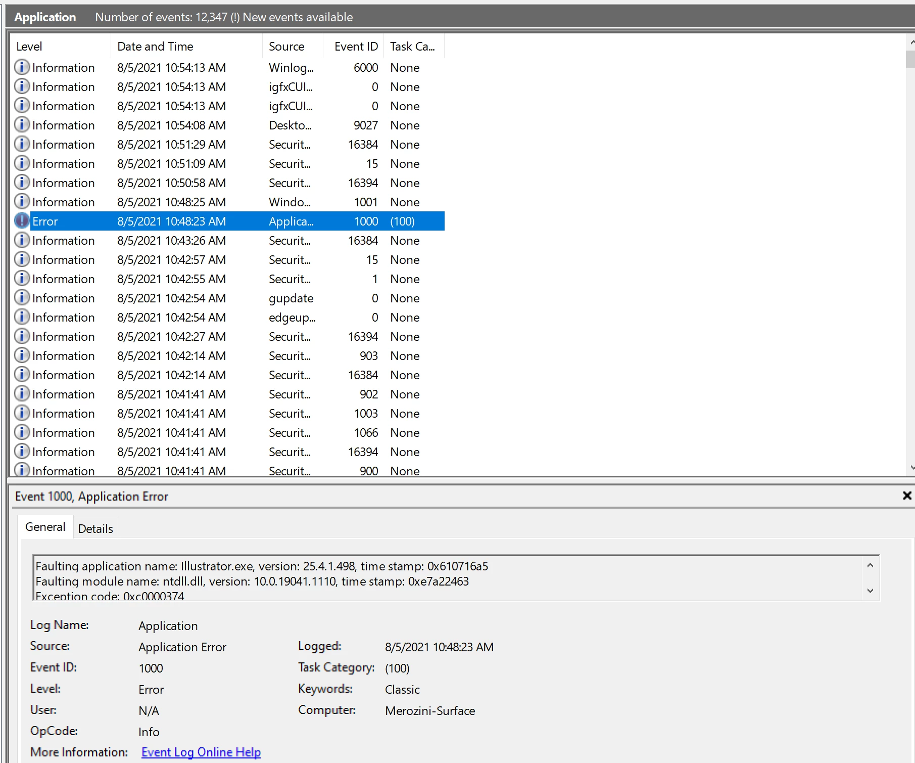 Faulting application path: C:\Program Files\Adobe\Adobe Illustrator 2021\Support Files\Contents\Windows\Illustrator.exe