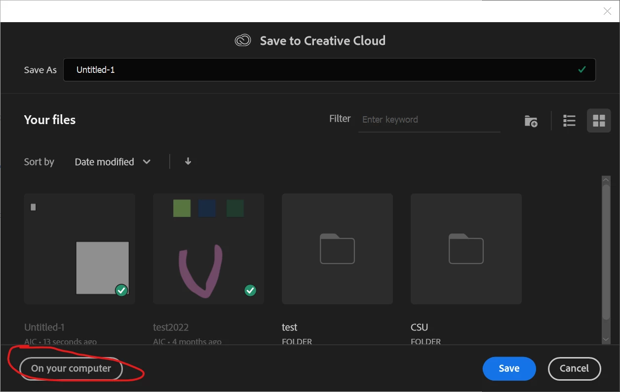 Illustrator 27.3.1 no longer gives toggle to save to computer you can only save to cloud