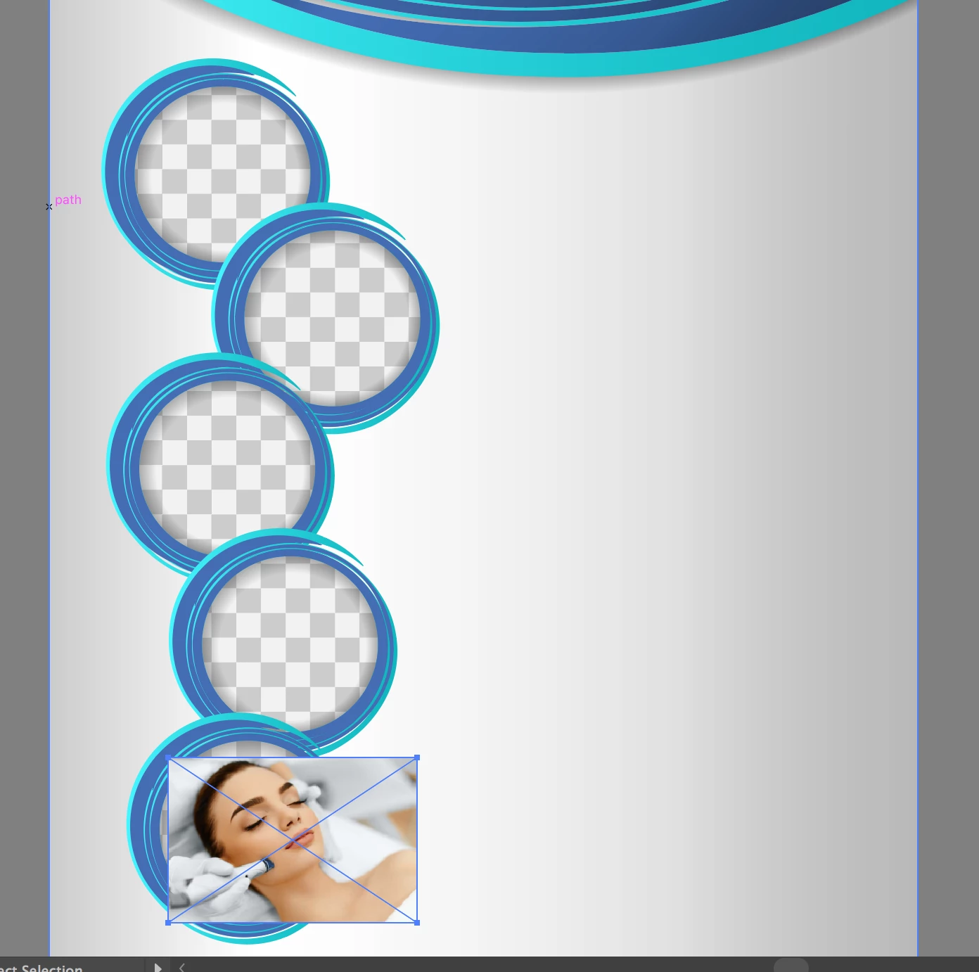 I downloaded an illustrator flyer which has areas to add image in between the circles. I would like to add them behind the main layer so the drop shadow effect is visible. I am not sure how to do that. I have tried sending the image back but it disappears. what is the best way to use these template which have are given areas to insert images behind the main layer.